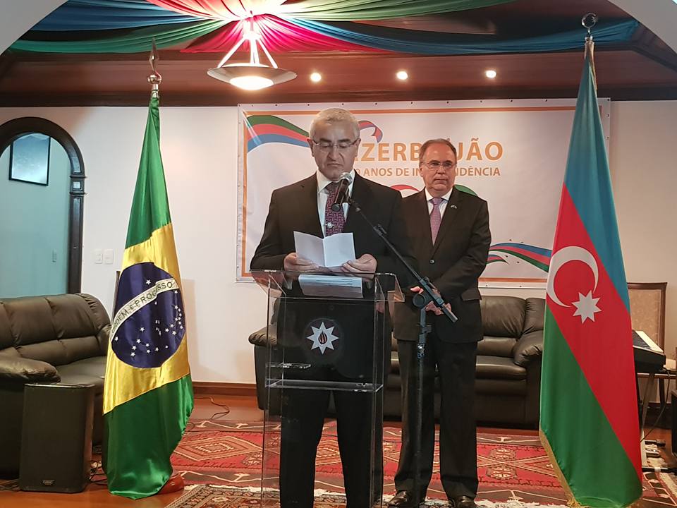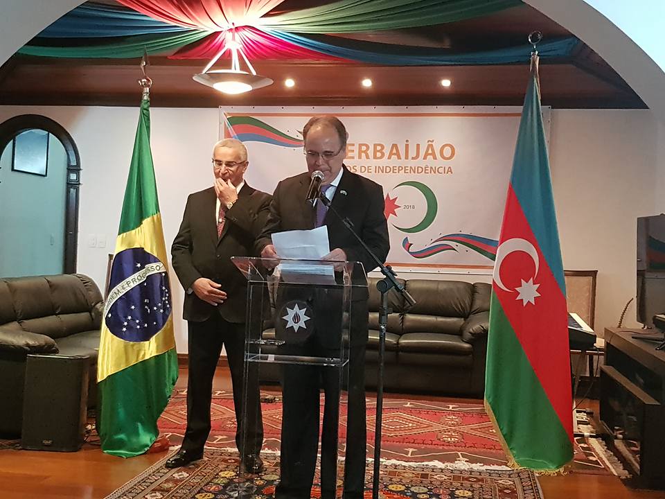 No dia 28 de maio de 1918 foi declarada a primeira democracia secular do mundo muçulmano, a República Democrática do Azerbaijão, e hoje celebramos o 100o aniversário da independência do nosso país – conhecido como o Dia da República. O país foi ocupado em 1920 pelos soviéticos, mas apesar de sua curta existência, a República Democrática do Azerbaijão tornou-se um símbolo de aspirações da nação no seu caminho para a independência. Em 1991, após o colapso da União Soviética, o Azerbaijão restaurou a sua soberania e enfrentando muitos desafios externos e internos, mas devido à visão estratégica e a sábia política de Heydar Aliyev, líder nacional do povo do Azerbaijão, o país conseguiu superar esses desafios alcançando a estabilidade e prosperidade. Hoje, o Azerbaijão, sob a liderança do Presidente Ilham Aliyev, que foi reeleito novamente em abril deste ano, tornou-se um dos países mais estáveis politicamente e economicamente da região do Cáucaso e do mundo. Através da construção de uma infraestrutura transregional de energia, transporte e logística e muitos outros projetos, o Azerbaijão se tornou um líder regional representando hoje 80% do PIB da região do Cáucaso do sul.
