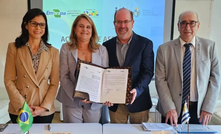 Com apoio institucional do Ministério da Agricultura e Pecuária (Mapa), a Empresa Brasileira de Pesquisa Agropecuária (Embrapa) e o Instituto Nacional de Investigação Agropecuária do Uruguai (INIA) assinaram na quarta-feira (3), o acordo que cria a Unidade Mista de Pesquisa e Inovação (UMIPI-BR.UY), avançando em uma nova etapa da cooperação agrícola bilateral. A formalização ocorreu em Punta del Este durante a reunião do Programa Cooperativo para el Desarrollo Tecnológico Agroalimentario y Agroindustrial del Cono Sur (Procisur).