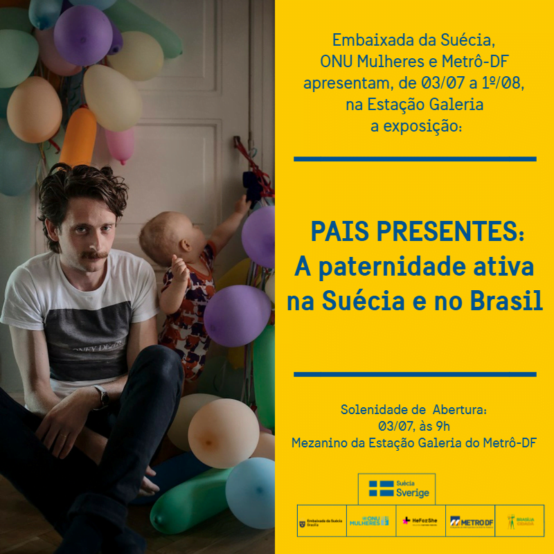 Como parte dos Diálogos Nórdicos, a Embaixada da Suécia e a ONU Mulheres inauguram na terça-feira (3) a exposição “Pais presentes: a paternidade ativa na Suécia e no Brasil” na Estação Galeria do Metrô de Brasília (DF). A exposição, realizada no escopo da iniciativa ElesPorElas HeForShe, foi construída para estimular a criação de políticas de incentivo e de uma nova cultura de compartilhamento igualitário das tarefas de cuidado entre o pai e a mãe.