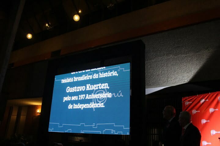 O ex  tenista e campeão mundial Gustavo Kuerten também enviou uma mensagem que foi exibida em vídeo para os peruanos . Vários embaixadores de outros países, representantes do governo brasileiro e amigos do Peru prestigiaram a festa  preparada pelo embaixador do Peru no Brasil Vicente Rojas Escalante que enfatizou as relações bilaterais com o Brasil e o crescimento nas áreas de turismo, gastronomia, cultura e economia .