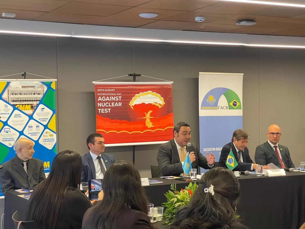 A Embaixada da República do Cazaquistão no Brasil, em parceria com a Confederação Nacional de Municípios do Brasil (CNM), o Instituto Climático VBH e o Fórum de Amizade “Cazaquistão-Brasil”, realizou a conferência científico-prática intitulada “A conquista da Essencial Paz Mundial: Apresentação das iniciativas antinucleares do Cazaquistão”. O evento foi dedicado ao Dia Internacional contra Testes Nucleares – 29 de agosto.