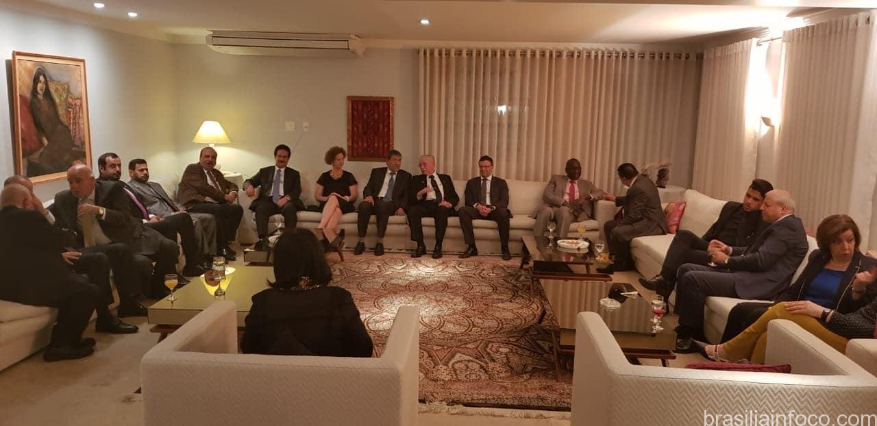 O anfitriao foi o Embaixador da Palestina e Decano do Conselho de Embaixadores Arabes no Brasil, Ibrahim Alzeben. A embaixadora brasileira, Lígia Scherer, também estava presente e no  discurso de ambas as partes foram enfatizados as relações  de alto nível entre a Liga Árabe e o Governo brasileiro, relações sólidas e de amizade fraternal.O embaixador do Catar recebeu as credenciais do Presidente da República Michel Temer na semana passada e  pretende fomentar de forma intensa as relações Brasil-Catar.