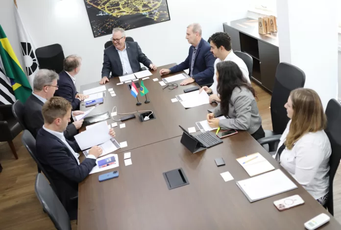 A reunião contou ainda com a participação do consultor holandês para Ciência, Tecnologia e Inovação, Jens Krol, e do professor Caio Costa Oliveira, que representou a pró-reitora de pesquisa da universidade, Ana Frattini.
