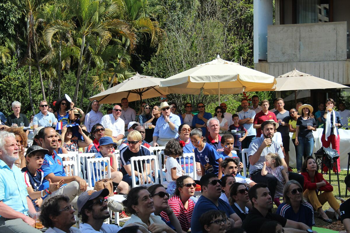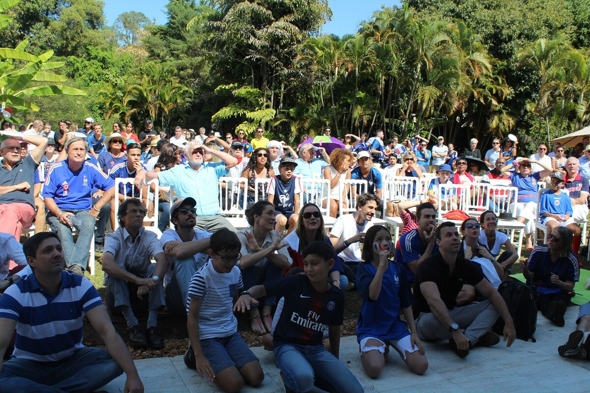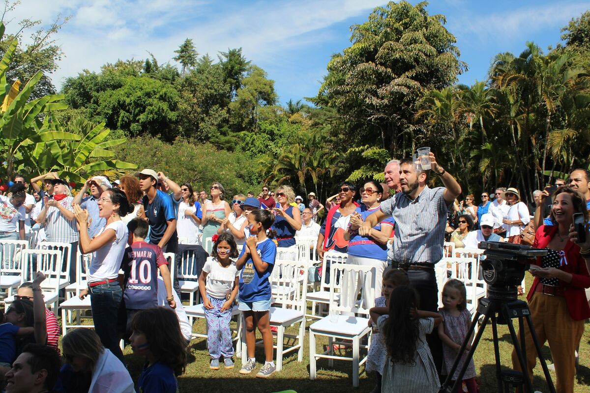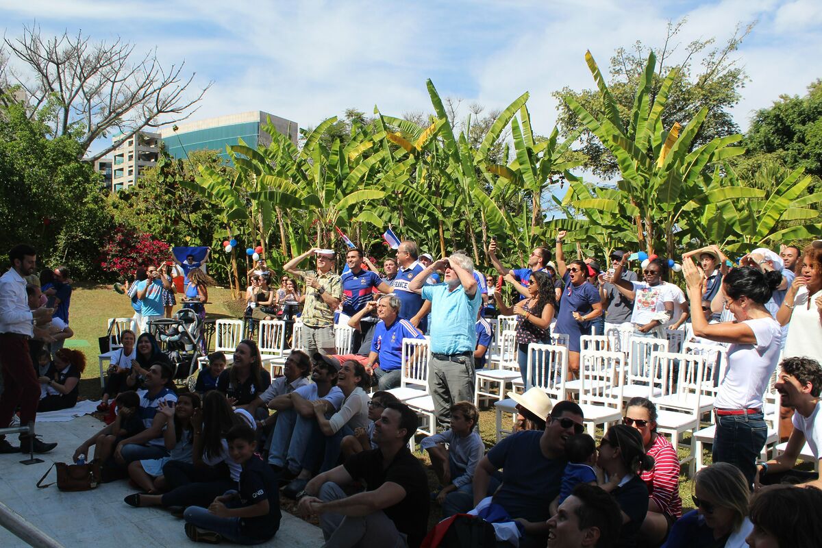 “Allez le Bleus “, “bravo les bleus “, bradavam os torcedores na residência do embaixador da França em Brasília, que abriu suas portas neste domingo , um dia após a comemoração da data nacional francesa em 14 de julho. Franceses, belgas e simpatizantes brasileiros estavam entre os torcedores que vibraram com a vitória da França na Copa do Mundo de 2018. As emoções transmitidas pelo telão não foram poucas, a cada gol muita vibração da torcida.